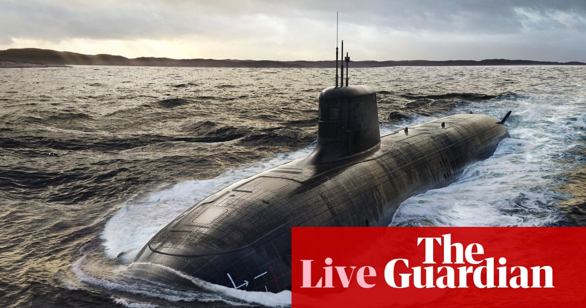 ","elementId":"0800a0e1-de74-4e91-b0d8-aa6c634250b9"}],"attributes":{"pinned":false,"keyEvent":true,"summary":false},"blockCreatedOn":1678737680000,"blockCreatedOnDisplay":"16.01 EDT","blockLastUpdated":1678738345000,"blockLastUpdatedDisplay":"16.12 EDT","blockFirstPublished":1678737713000,"blockFirstPublishedDisplay":"16.01 EDT","blockFirstPublishedDisplayNoTimezone":"16.01","title":"Submarine program to roll out in four phases","contributors":[],"primaryDateLine":"Mon 13 Mar 2023 16.28 EDT","secondaryDateLine":"First published on Mon 13 Mar 2023 15.25 EDT"},{"id":"640eaa4f8f08fe006b95f877","elements":[{"_type":"model.dotcomrendering.pageElements.TextBlockElement","html":"