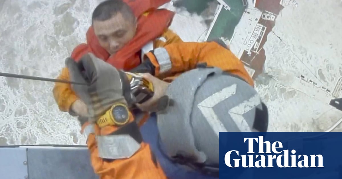 Hong Kong and mainland Chinese rescuers rushed to an area of southern China where a ship with a crew of 30 on board was snapped in two by strong waves created by Typhoon Chaba. The footage released by the Hong Kong Government Flying Service showed members of the crew of the engineering vessel Fujing001 being pulled to safety. Government Flying Service officials said three people had been rescued, but the fate of the other 27 crew on the vessel remained unknown.