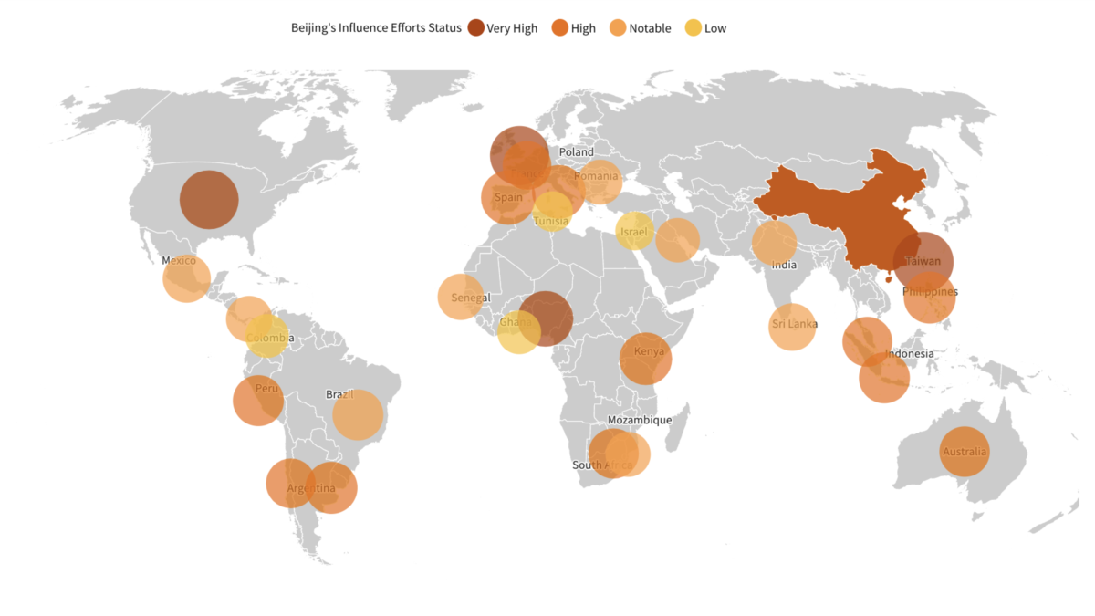 Of the 30 countries studied from around the world, Beijing’s efforts at influencing the media were deemed “high” or “very high” in 16 of them, and only half of all those surveyed were found to be resilient to the messaging, the other half vulnerable.