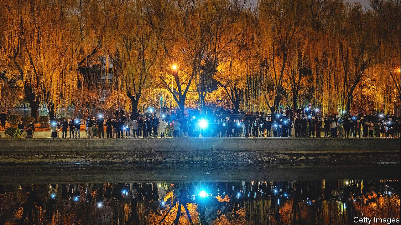 Yet his account, “Teacher Li Is Not Your Teacher”, became a critical conduit for information about the protests against covid-19 restrictions that erupted across China last month (one is pictured). Participants and spectators sent him loads of images and eyewitness accounts by direct message. By reposting many, he played an important role in conveying the scale of the unrest to others, in China and abroad. He also gained almost 600,000 new followers and 387m visits to his Twitter profile in November alone.