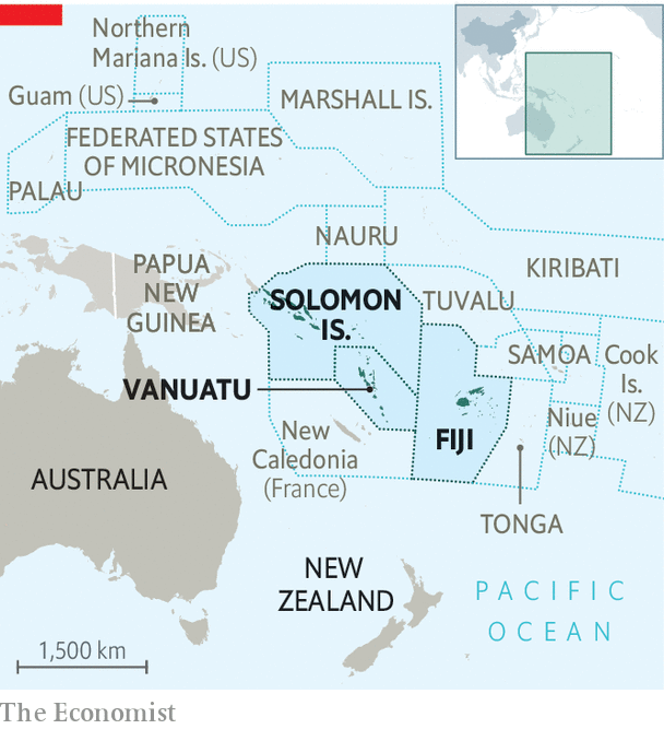 Even so, the termination of China’s deal is a geopolitical win for America and its allies. China has recently sought to upgrade its links in the Pacific in a bid to contest America’s influence and establish a military foothold there. Though it denies seeking a base, China has probably approached Vanuatu and the Solomon Islands about one, the Pentagon says. China also recently donated more combat-related kit to Pacific countries, giving Fiji a naval vessel in 2018 and 47 military vehicles in 2022. A Chinese police liaison officer has been based in Fiji since 2021. China’s embassy in Fiji responded to Mr Rabuka’s decision by saying that no external force would disrupt their military and police co-operation.