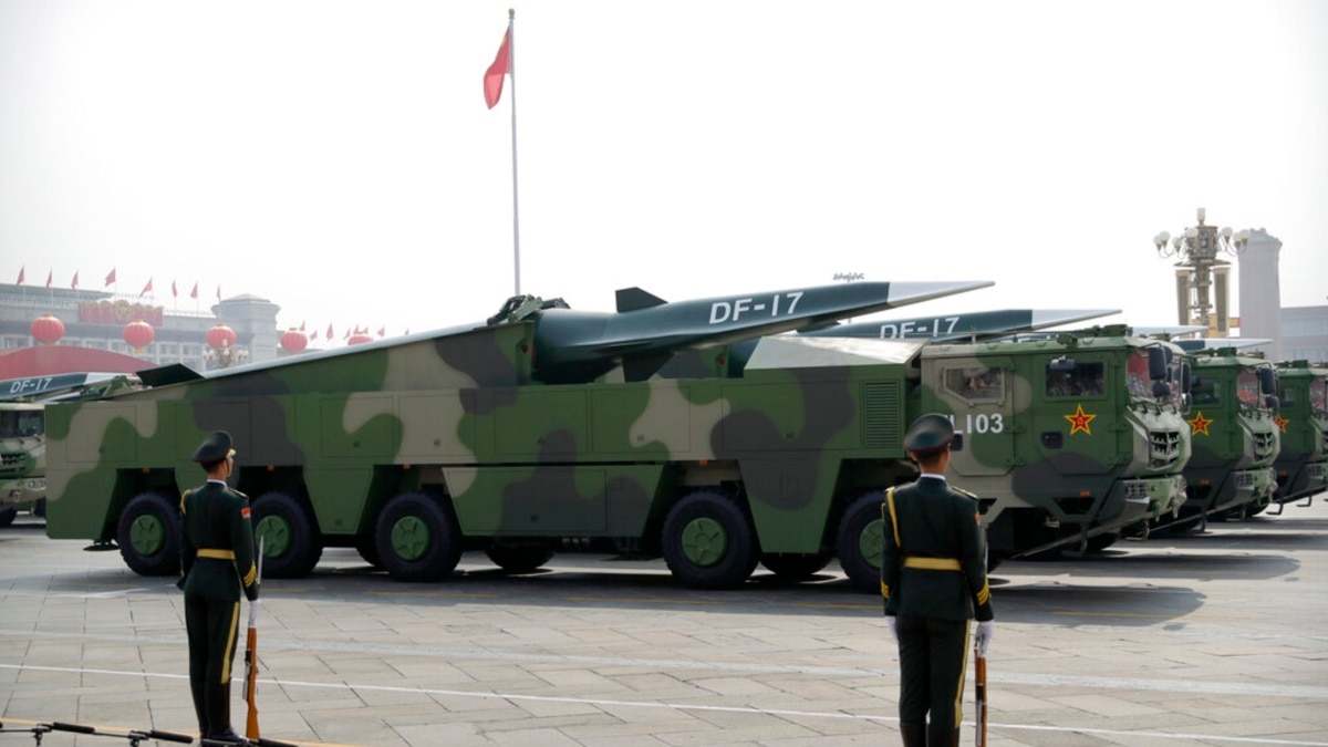China’s hypersonic arsenal includes the DF-17, a medium-range ballistic missile with a hypersonic glide vehicle that has a range of 1,600 kilometers.