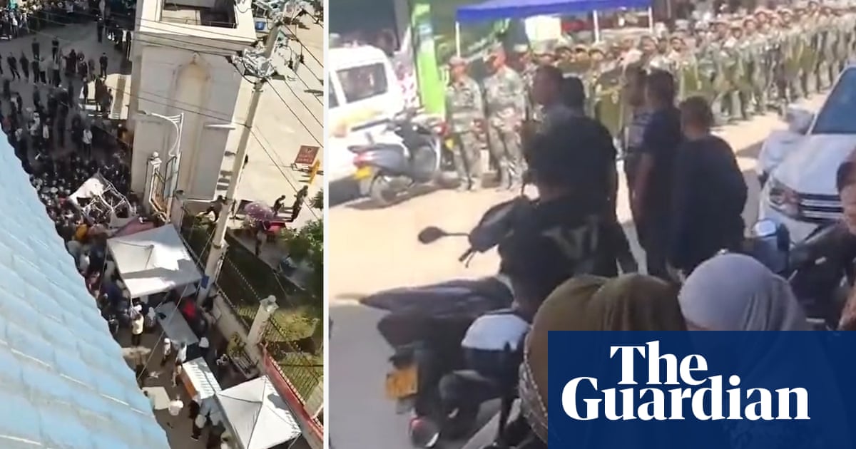 Videos shared on social media show protesters clashing with police outside a mosque in Yunnan in south-western China. Tensions rose after a ruling ordered parts of the Najiaying mosque to be removed and verified videos from Saturday show police officers near the entrance of the mosque and demonstrators chanting and appearing to try to enter the grounds