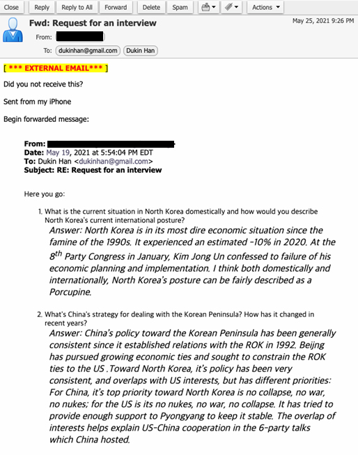 Suspected North Korean hackers are impersonating journalists in emails to target experts on North Korea issues in phishing attacks, a collection of emails obtained by Radio Free Asia showed. The 12 suspicious emails were forwarded to RFA’s Korean Service by the experts who received them. RFA was not able to confirm the identity of any of the senders of the emails, nor their connection with the North Korean government. However, they all exhibit signs that strongly suggest that they were phishing attempts by agents working for Pyongyang in order to…