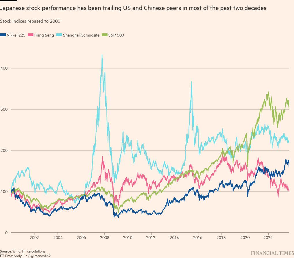 But veteran Japan investors have warned that the window is limited for the Kishida team to sustain global interest in the country, which has benefited from external factors such as global inflation — which has finally helped to lift Japan out of deflation — as well as the big gap between interest rates in Japan and the US and geopolitical uncertainty over China.