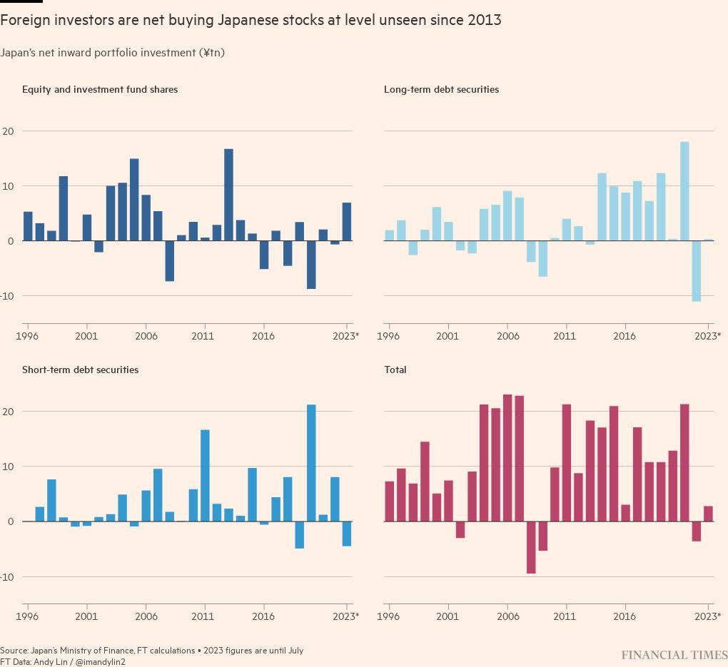 Nomura, the Japanese investment bank, estimated that if non-resident investors were to completely eliminate their underweight position, it would push up the Nikkei 225 index — which today stands at about 31,000 points — by 4,900 points.