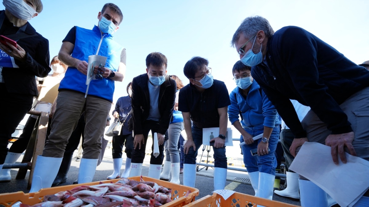 U.N. inspectors took samples from a fish market near the Fukushima nuclear power plant on Thursday following the release of wastewater from the wrecked facility in August.