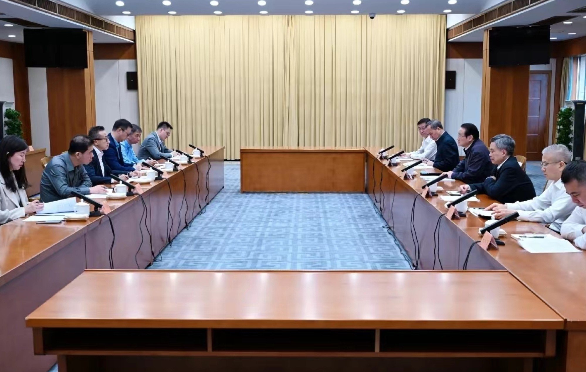 Yi Lianhong, the Communist Party Secretary of eastern Zhejiang province, calls on Alibaba Group Holding to boost strategic investments at a meeting with the company’s senior management in Hangzhou on October 31, 2023. Photo: Handout