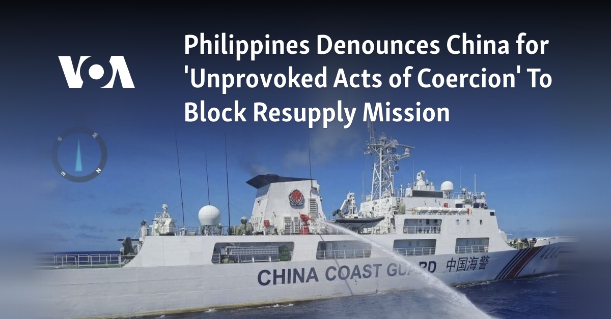 The Philippines on Friday condemned China’s coast guard for “unprovoked acts of coercion and dangerous maneuvers,” including its use of a water cannon against one of its boats, in an attempt to disrupt a resupply mission in the South China Sea.