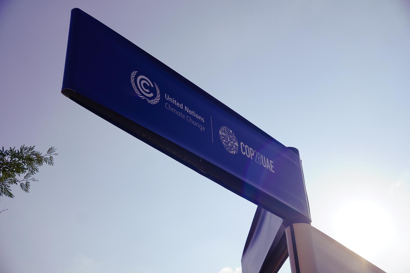 A sign at COP28 Dubai. Photo by Sacha Shaw.