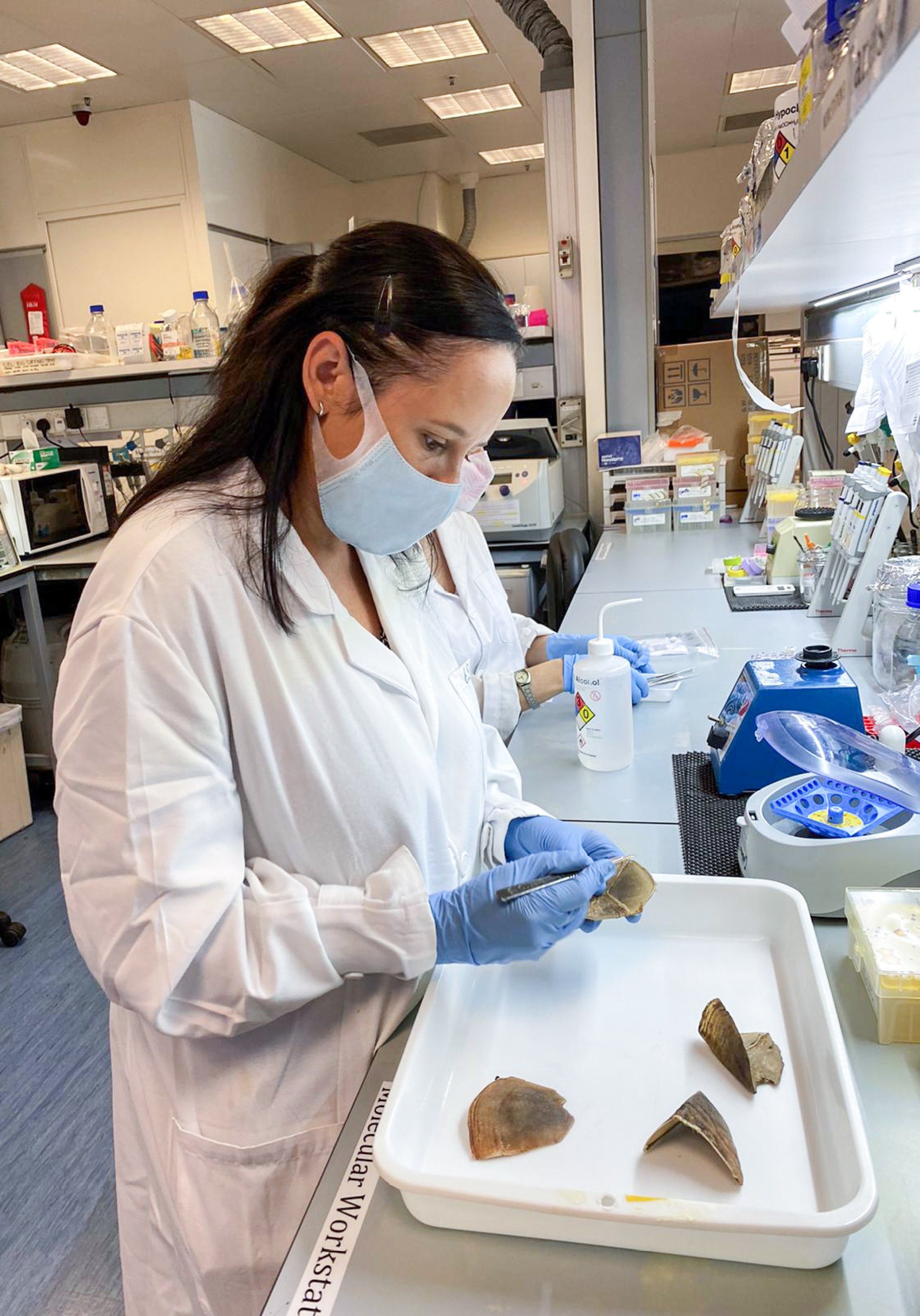 Research team member Tracey-Leigh Prigge of the University of Hong Kong prepares pangolin scales for DNA extraction. Photo: Tracey-Leigh Prigge