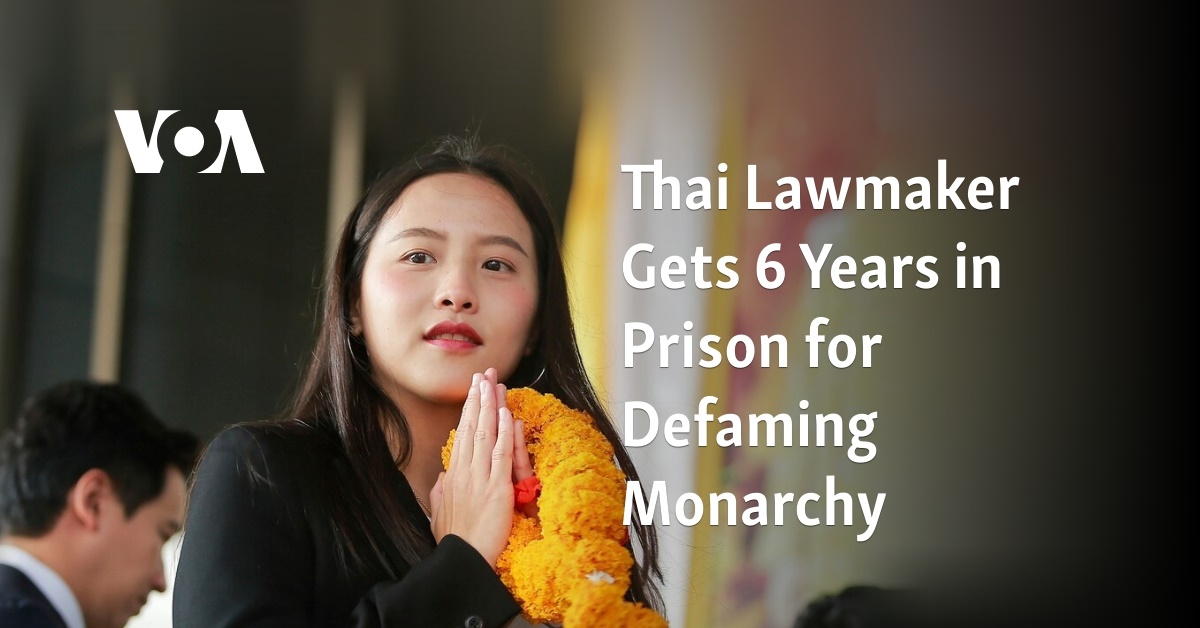 A court in Thailand convicted and sentenced a recently elected lawmaker Wednesday to six years in prison for defaming the monarchy under a controversial law that guards the royal institution.