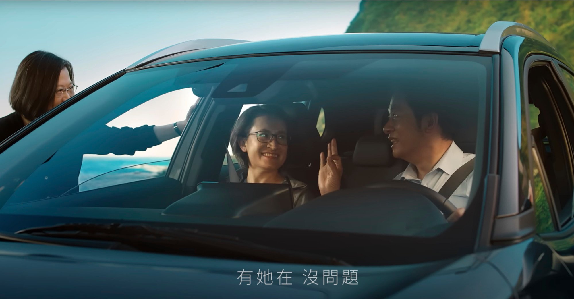 Hsiao Bi-khim, his running mate and the former de facto ambassador to the US, then gets in the car beside him.