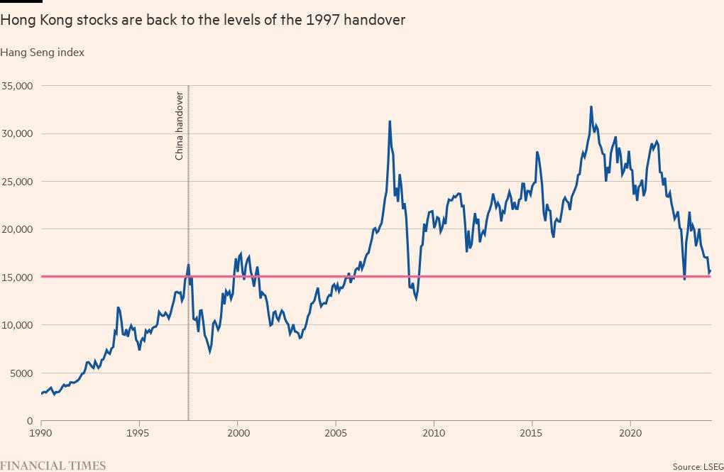 “It pains me to admit it, but Hong Kong is now over,” writes Stephen Roach in his latest column on the demise of the Chinese territory’s stock market. The former chair of Morgan Stanley Asia points to the confluence of three factors that explain why the Hong Kong stock market is likely to remain in the mire.