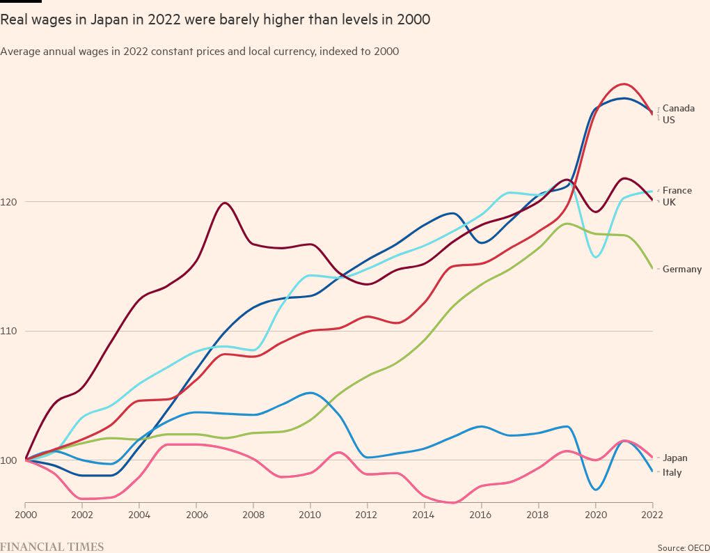 Combined with strong government pressure, the sharp rise in prices caused by the war in Ukraine and the global energy crisis had already led to large gains in wages during last year’s negotiations. But trade unions had failed to secure pay rises that would cover accelerating inflation while the gains did not spread evenly to small and medium-sized enterprises, which employ about 70 per cent of Japan’s workforce.