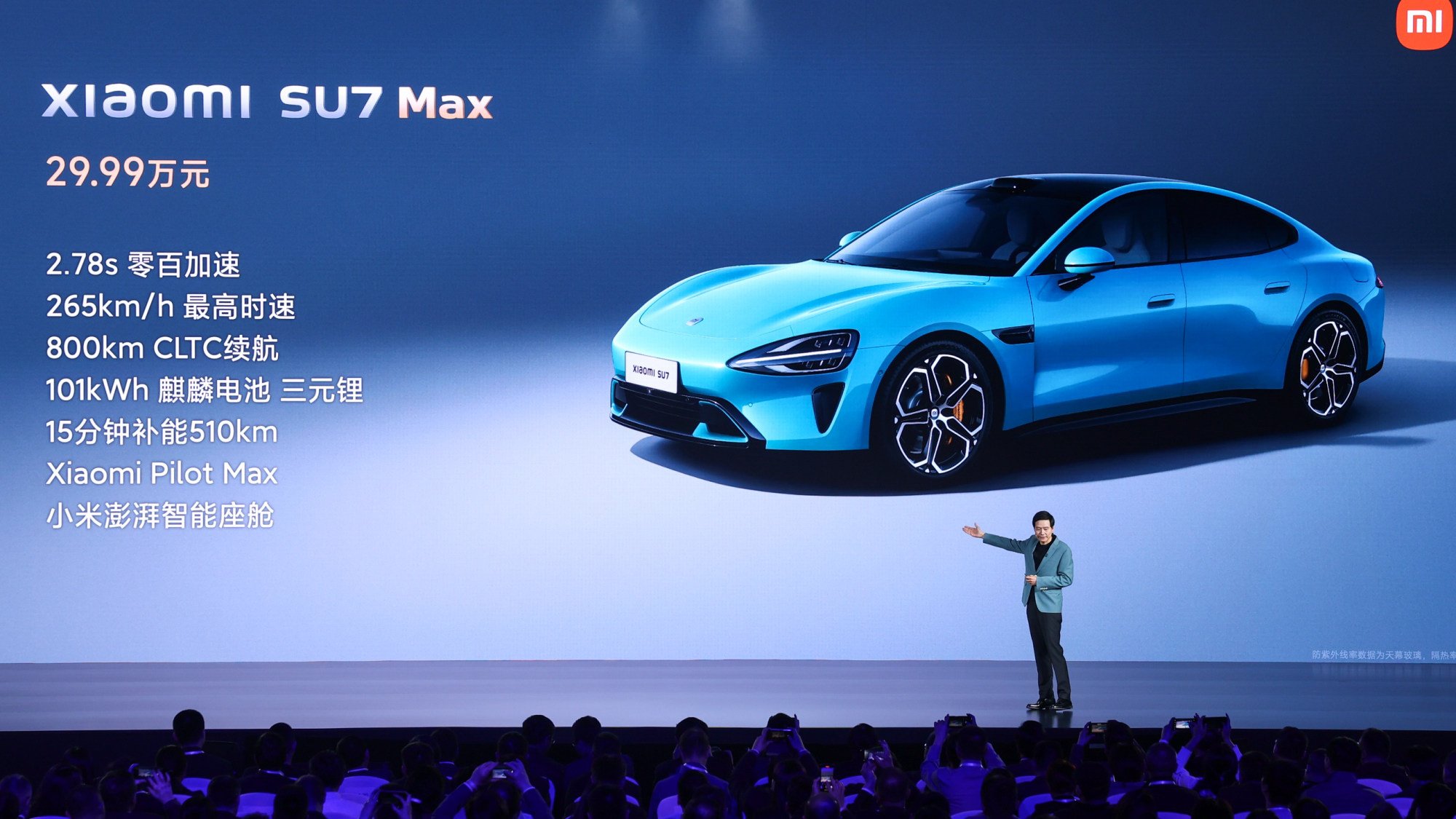 Xiaomi founder, chairman and chief executive Lei Jun introduces the company’s first electric vehicle, the SU7, at its commercial launch in Beijing on March 28, 2024. Photo: Xinhua