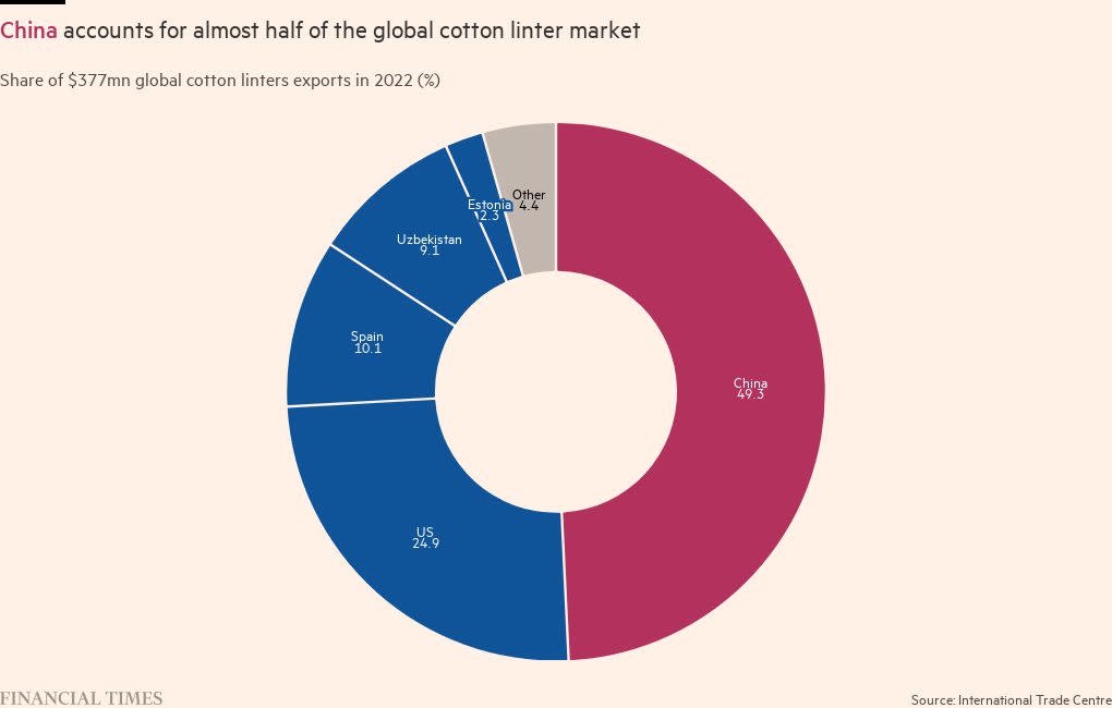 China accounts for almost half of cotton linters pulp traded globally, according to the International Trade Centre. The largest importers of the material include Germany, Sweden and Belgium.
