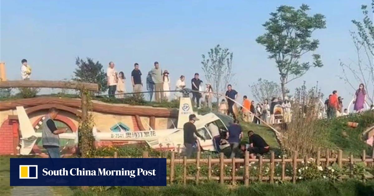 The helicopter had been flying over a newly constructed park in the city in Jiangsu, which is one of China’s most popular destinations.
