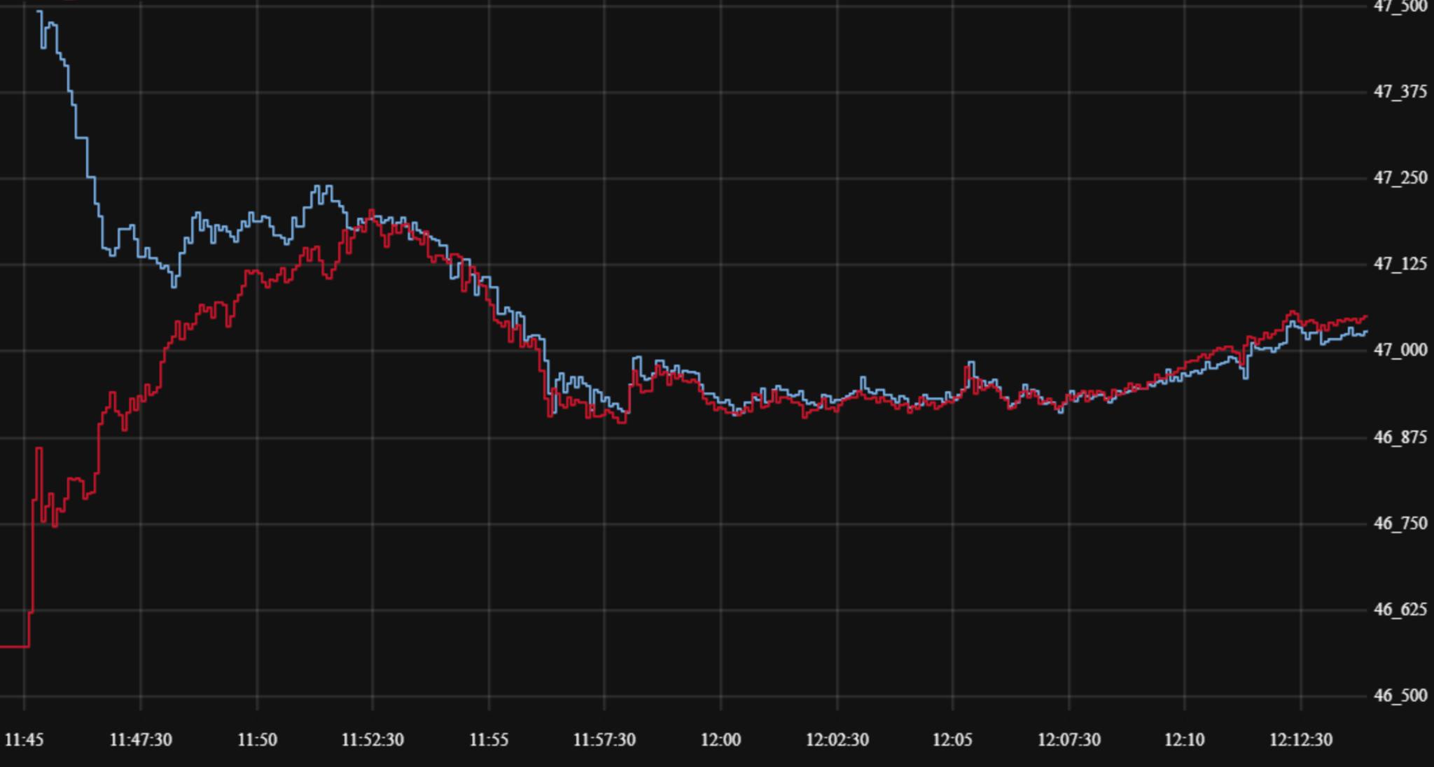 For example, the Order says “it is particularly instructive” to consider the first eight minutes of trading on January 17, 2024 in order to understand the “intent and design” of our options strategy, which it calls “Intra-day Index Manipulation.” Those eight minutes illustrate basic index arbitrage trading, which many of you will know as a core and commonplace mechanism of financial markets that keeps the prices of related instruments in line. One can easily observe that there was a large divergence between the price of the BANKNIFTY index (NSEBANK Index on Bloomberg) reflected in options markets and the price implied by the stock levels. Jane Street (presumably alongside other market participants) traded in a direction consistent with closing that gap and bringing the two markets more in line with one another: