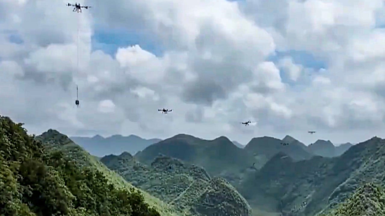 Chinese drones carry 180 tonnes of steel and concrete up mountain