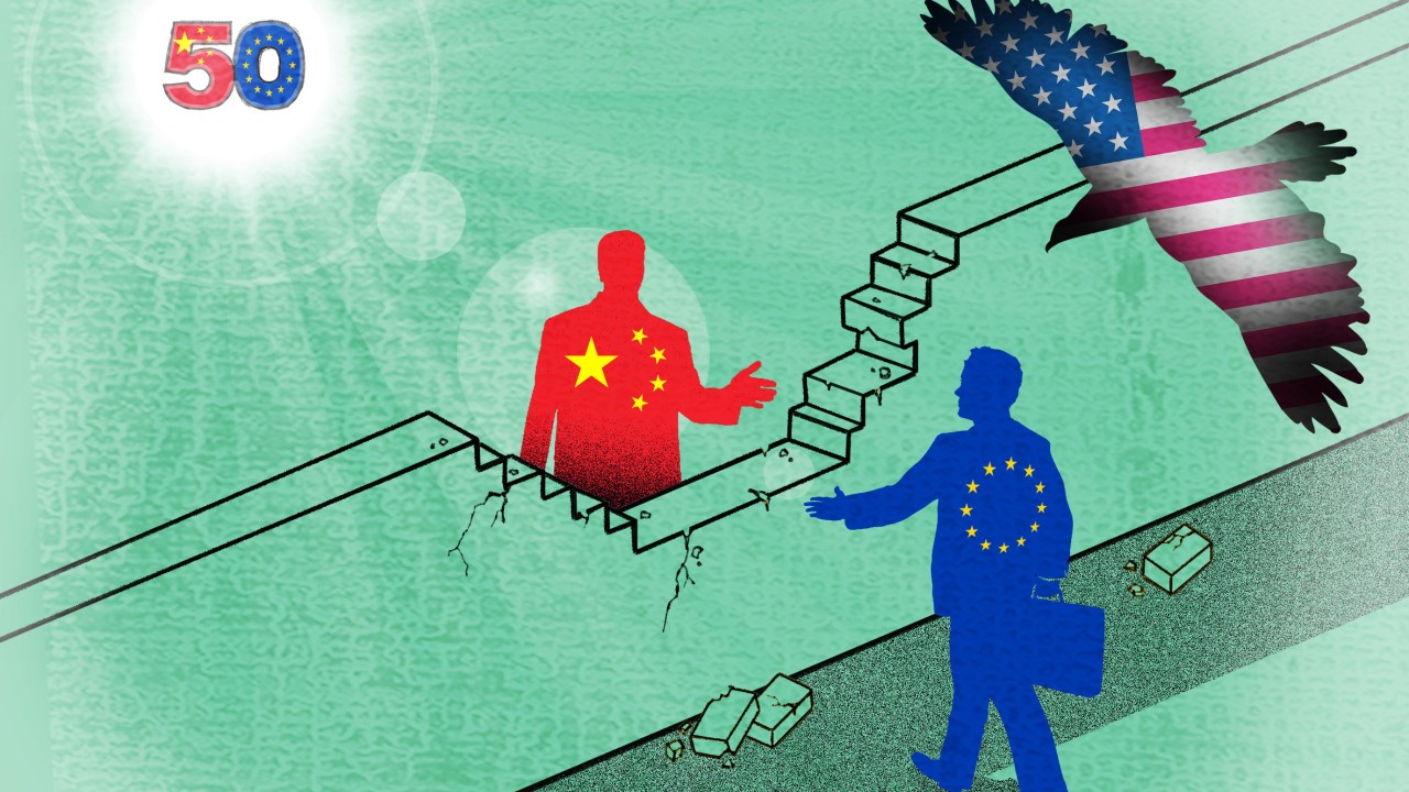 This year marks half a century of formal diplomatic relations between China and the European Union as well as the 25th anniversary of the founding of the European Union Chamber of Commerce in China. In this, the first of a series of reports examining ties between the two powers, Shi Jiangtao looks at the influence the United States has on the relationship. Advertisement China has ramped up efforts to mend ties with the European Union ahead of a planned bilateral summit later this month, seeking to capitalise on transatlantic disaffection…