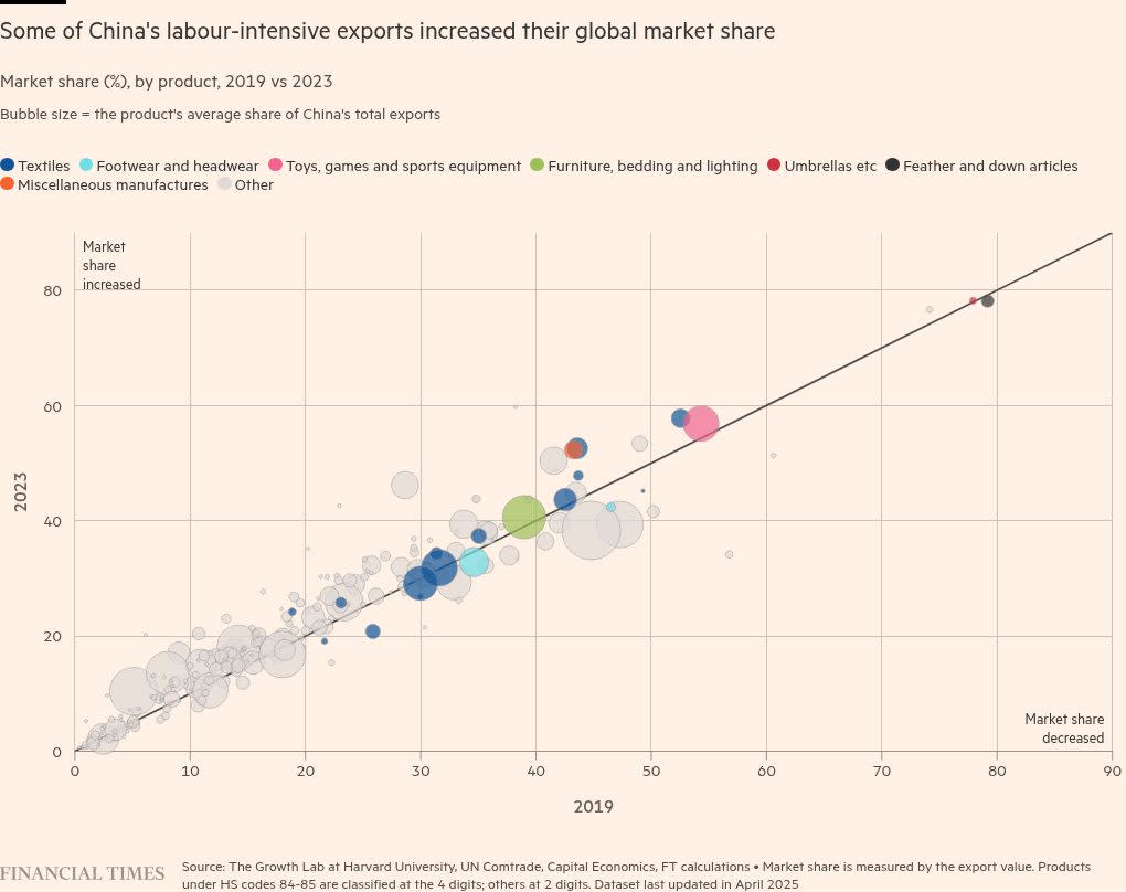 Unlock the Editor’s Digest for free Roula Khalaf, Editor of the FT, selects her favourite stories in this weekly newsletter. China’s homegrown robot makers are driving a wave of low-cost automation that is helping local factories churn out more goods at lower prices, allowing the country to increase its share of exports, even in labour-intensive products. President Xi Jinping’s Made in China 2025 plan and other government initiatives have pushed to build up domestic robot makers and pump investment and credit into manufacturing. Chinese factories are installing about 280,000 industrial…