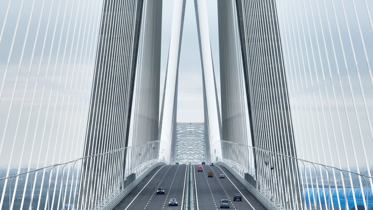 The world’s longest cable-stayed bridge opened to traffic in Jiangsu province, eastern China on Tuesday, connecting the cities of Changzhou and Taizhou and slashing the travel time from over an hour to just 20 minutes. Advertisement The Changtai Yangtze River Bridge stretches 10.3km (6.4 miles) with a main span of 1,208 metres (3,960 feet). It is the river’s first crossing to carry an expressway, regular road and intercity railway, all on the same structure. Officials said the bridge – which took six years to complete and was built using a…