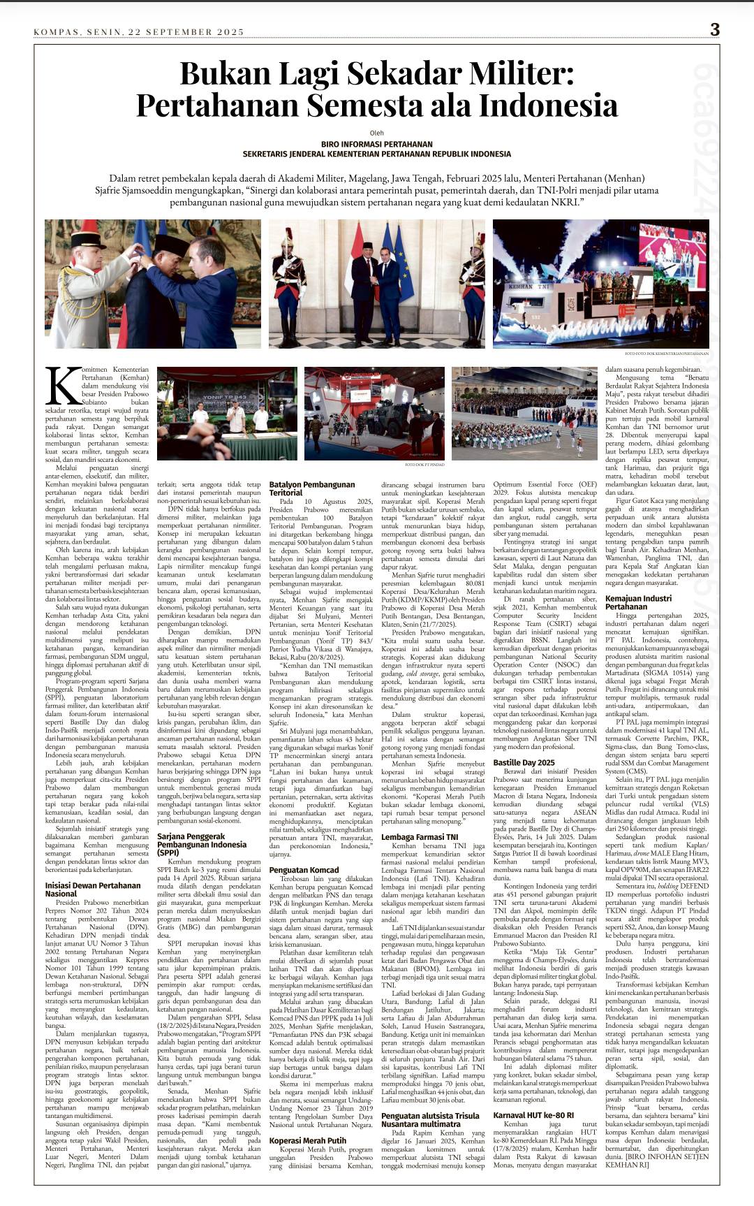 Indonesia’s largest newspaper ran an unusual advertisement this week — a full-page essay by the ministry of defence, explaining the expanding role of the military in economic and civilian affairs. Titled “no longer just the military: Indonesia’s people’s defence”, the ministry said that its role has expanded in recent times to support President Prabowo Subianto’s “grand visions” to build “comprehensive defence” for Indonesia. The ministry is “transforming from mere military defence to universal defence based on welfare and cross-sector collaboration”, it said in the Kompas newspaper, justifying the armed forces’…