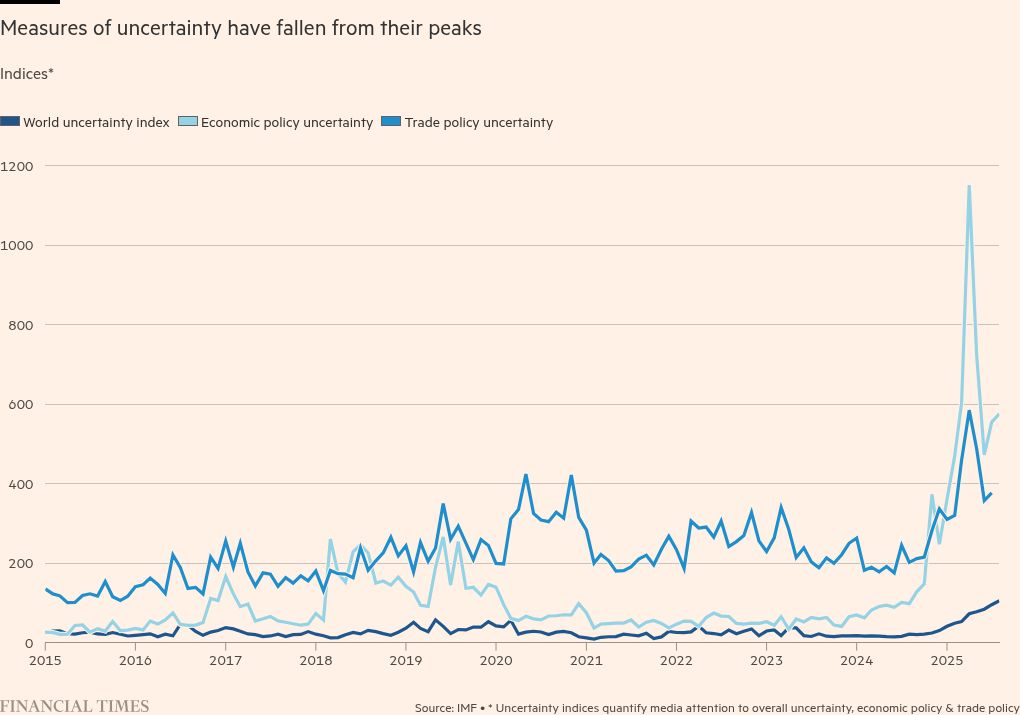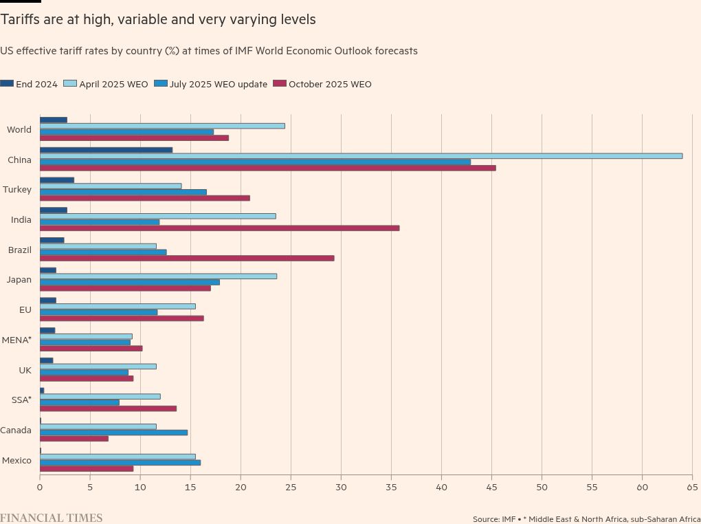 First, it is indeed true that tariffs have ended up somewhat less high than initially indicated on Donald Trump’s “liberation day”, April 2 2025. In the end, argues Georgieva, “the US trade-weighted tariff rate has fallen from 23 per cent in April to 17.5 per cent now”. Moreover, there has been surprisingly little retaliation. Yet these are still high tariffs.