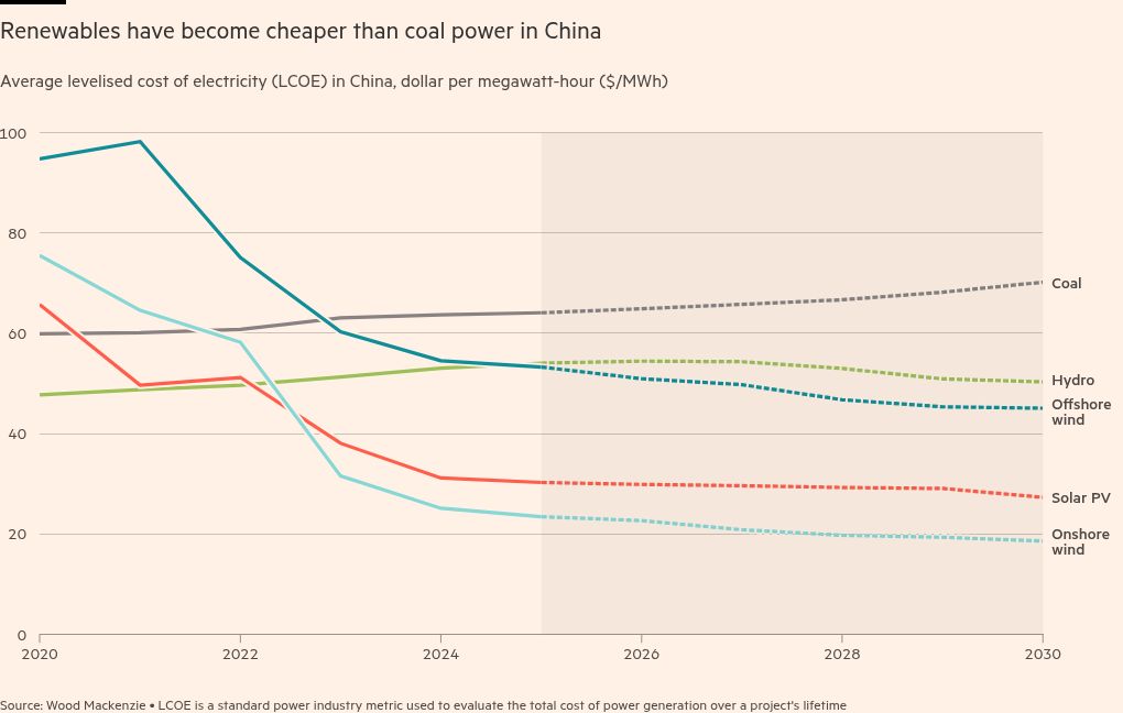 China’s clean energy investment reached more than $625bn last year, almost doubling since 2015, according to International Energy Agency data. Companies in the country produce more than 80 per cent of the world’s wind turbines, solar panels and energy storage batteries. State support, fierce local competition and technological breakthroughs have resulted in steep falls in costs.