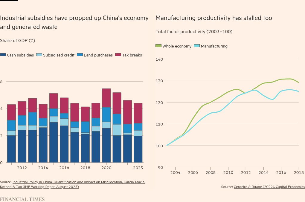 Aside from the sheer cost of subsidies — which the researchers calculate to be about 4.4 per cent of China’s GDP in 2023 — Beijing’s largesse has supported inefficiency, driven overcapacity and created huge financial losses.