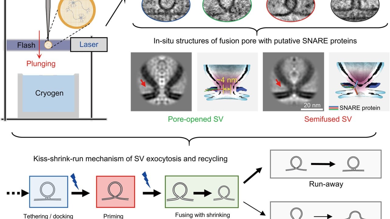 Chinese scientists have captured the “kiss-shrink-run” process of neuronal communication using the world’s first camera with nanometre resolution and a millisecond-scale imaging speed. Advertisement This cutting-edge cryogenic electron microscopy development enables the team to freeze moments of neurotransmission in time and clearly observe the complete dynamic process of the synaptic vesicle – a tiny, membrane-bound sac in a neuron that stores neurotransmitters. Their findings have also helped to resolve a key scientific debate that has plagued neuroscientists for half a century. This achievement – led mainly by biologists from the…