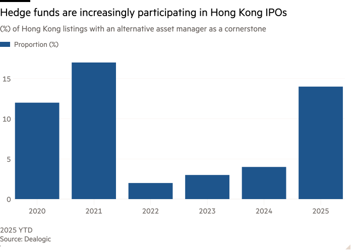 Unlock the Editor’s Digest for free Roula Khalaf, Editor of the FT, selects her favourite stories in this weekly newsletter. Global hedge funds are participating in Hong Kong listings at the highest rate since 2021 as the so-called “smart money” returns to the Chinese market after an extended slowdown. Millennium, Qube Research & Technologies and Oaktree are among the asset managers that have participated as early investors in Hong Kong initial public offerings this year. They have helped drive the proportion of listings with a hedge fund as a cornerstone…