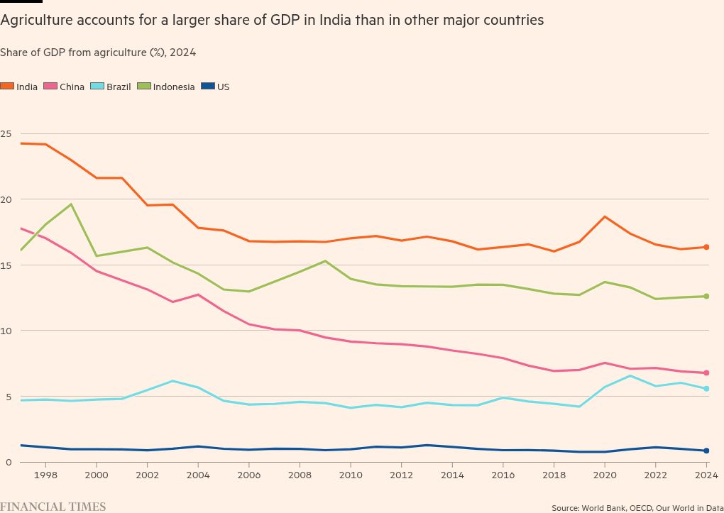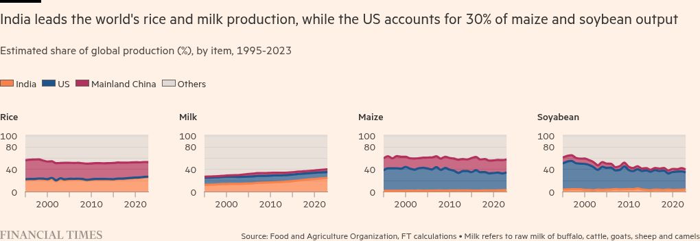 Farming may have been a “red line” for India in other negotiations — including Australia in 2022, the UK this year and also the EU — but the US agricultural lobby is pushing particularly hard, said an Indian official familiar with the negotiations.