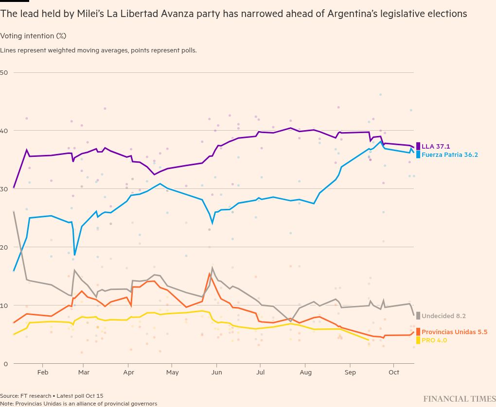 Argentines voted on Sunday in midterm elections that may determine the future of President Javier Milei’s free market reforms, as a crisis of confidence in his government roils Argentine assets.
