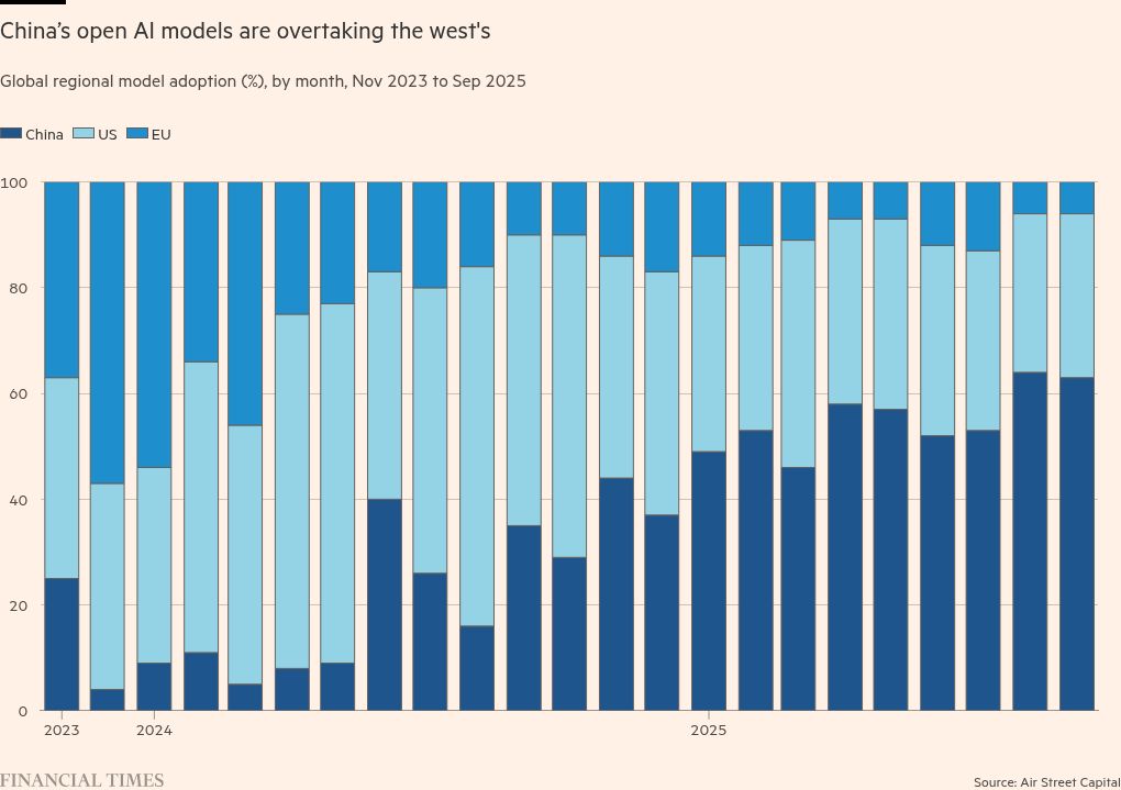 Yet those same constraints have pushed Chinese companies towards a different playbook: pooling compute, optimising efficiency and releasing open-weight models. DeepSeek-V3’s training run, for example, used just 2.6mn GPU-hours — far below the scale of US counterparts. But Alibaba’s Qwen models now rank among the most downloaded open weights globally, and companies such as Zhipu and MiniMax are building competitive multimodal and video models.