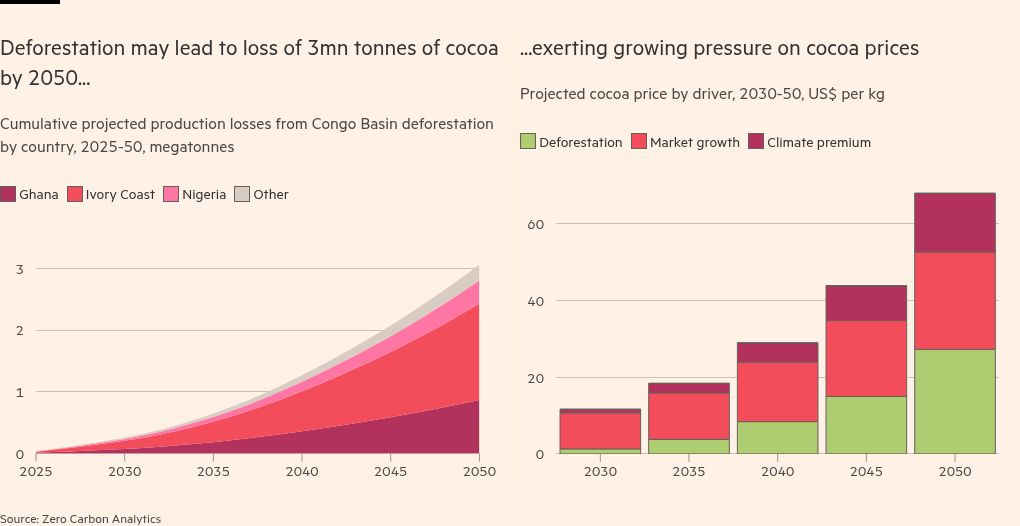 The degradation of the vast Congo Basin, known as the world’s “second lung”, is taking a toll across the African continent and threatening one of the world’s most traded and beloved crops: cocoa. Here’s how chocolate makers are responding.