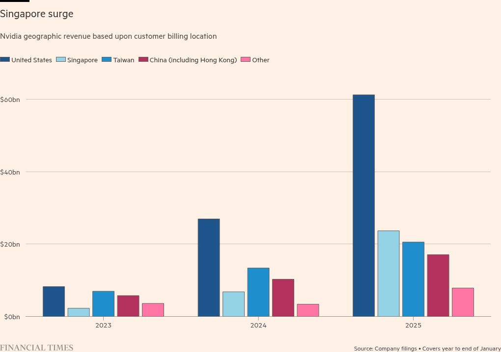 Singapore has been a sore spot for Nvidia lately. The Lion City (state) grew to be the chipmaker’s second-biggest billing location last year: