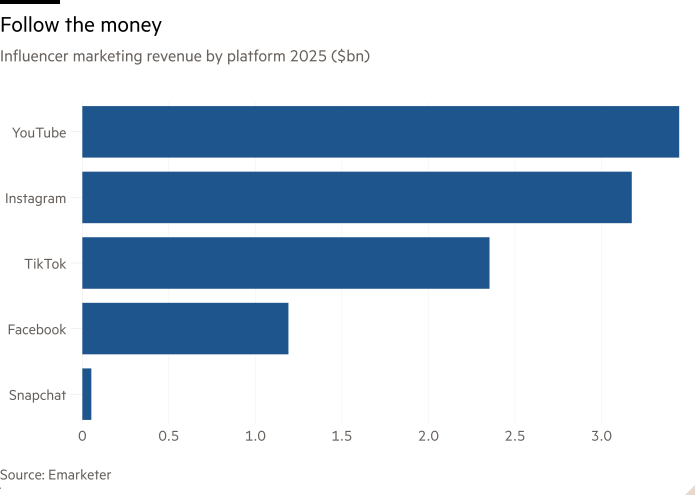 Unlock the Editor’s Digest for free Roula Khalaf, Editor of the FT, selects her favourite stories in this weekly newsletter. A stuntman, a 95-year-old grandmother and a silent comedian have little in common — apart from their self-made wealth. The trio are part of the influencer economy, an ecosystem shared by online content creators, social media platforms, ad agencies and data analytics, which Goldman Sachs has reckoned will be worth just shy of half a trillion dollars by 2027. It is easy to sneer at online content creation: it isn’t…