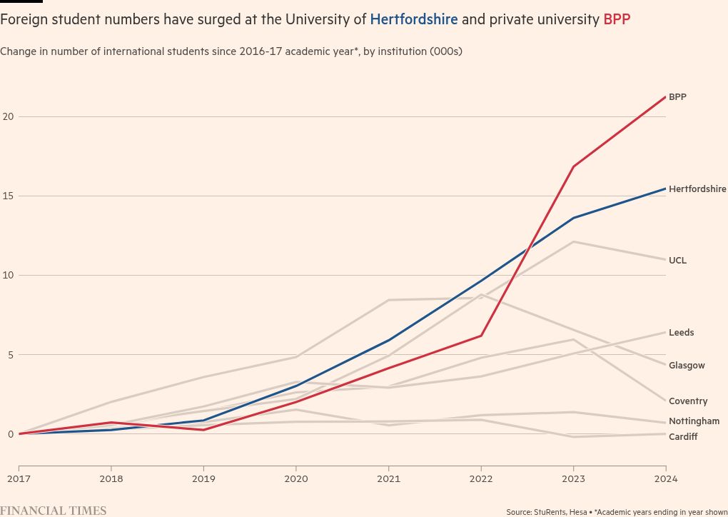 The University of Hertfordshire, which the Home Office has placed under an action plan that enforces stronger compliance checks, has suspended recruitment from Pakistan and Bangladesh until September 2026, blaming “long visa processing times”.
