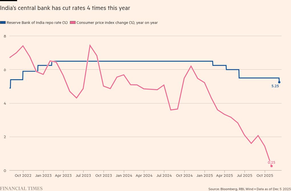The latest cut, at the conclusion of the Reserve Bank of India’s three-day meeting on Friday, brought interest-rate reductions under governor Sanjay Malhotra, who took over the reins of the Indian central bank late last year, to 1.25 percentage points.