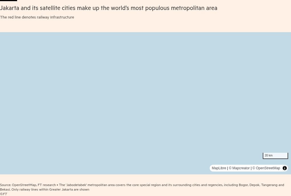 Last month, the UN updated its list of the world’s biggest cities after changing its methodology for assessing huge conurbations. It looked beyond Indonesia’s own 11mn reckoning of Jakarta’s population, sweeping into its calculations a much bigger urban area covering sprawling satellite towns such as Bogor, where Alfiyan lives.