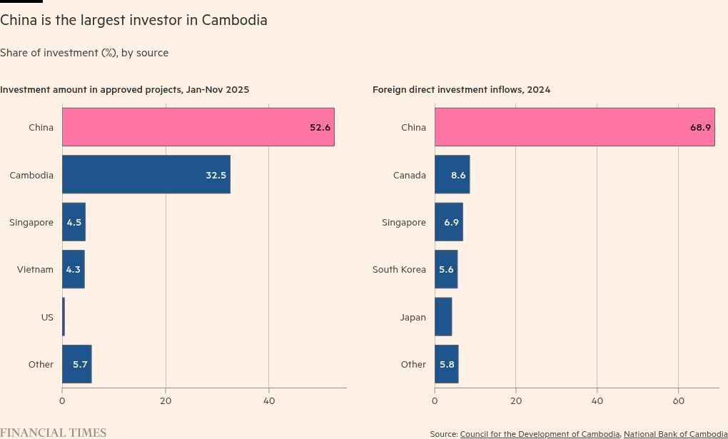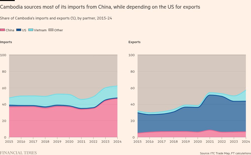 Spooked by US tariffs and a border conflict with mightier neighbour Thailand, Cambodia is looking to repair relations that have been strained by China’s commanding influence in the south-east Asian country. Its efforts illustrate how smaller countries are trying to position themselves as the US president disrupts the global trade order and ratchets up tensions with China.