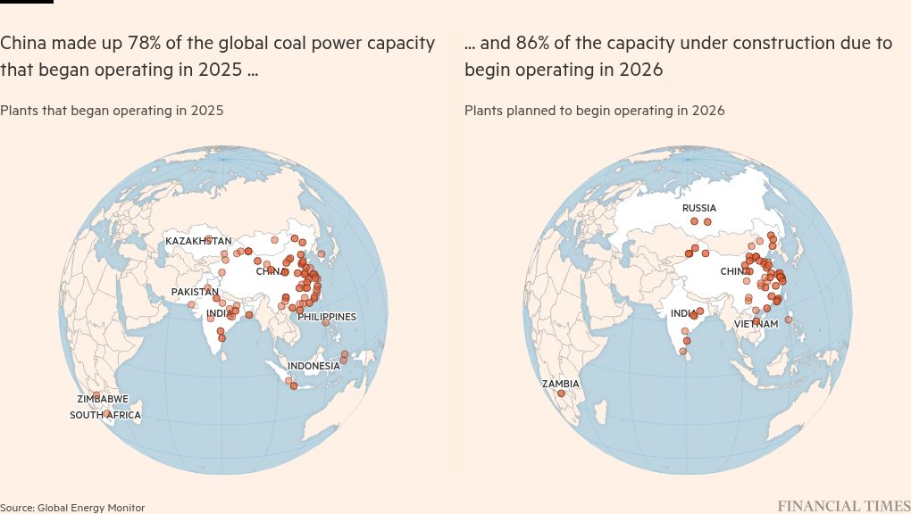 More than 100 coal-fired power station generator units are set to start supplying electricity worldwide in 2026, with most opening in China. The push to develop projects using the fossil fuel comes even as the country installs huge amounts of wind and solar power.
