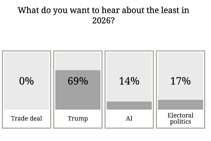 On Tuesday we asked what you want to hear about the least in 2026. Nearly 70 per cent of you want as little of Trump as is possible. If wishes were horses . . .