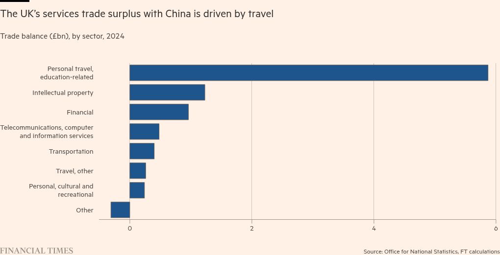 But business and trade secretary Peter Kyle said there were huge growth opportunities for services, which were currently “underweighted”. More than half of the UK’s services exports to China come from travel, a component which also includes education, and it exports more goods overall.