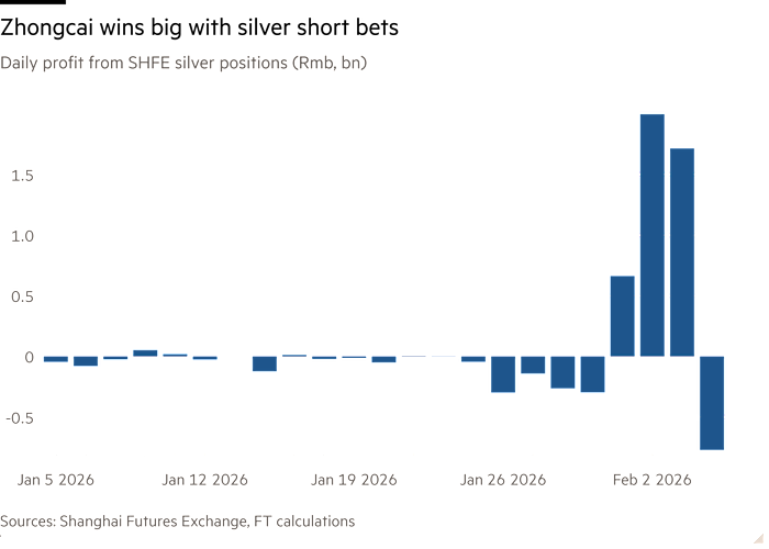 A Chinese trading firm, Zhongcai Futures, made more than half a billion dollars by betting that silver prices would fall. Zhongcai’s profits highlight the recent wild volatility in precious metals trading, particularly in China, where regulators have been working to tamp down on speculative activity.