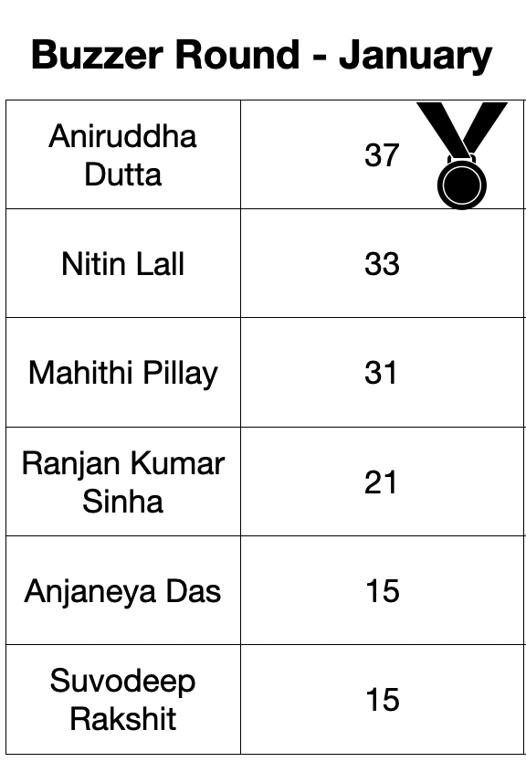 Aniruddha Dutta is the winner of Buzzer Round in January. Congratulations!