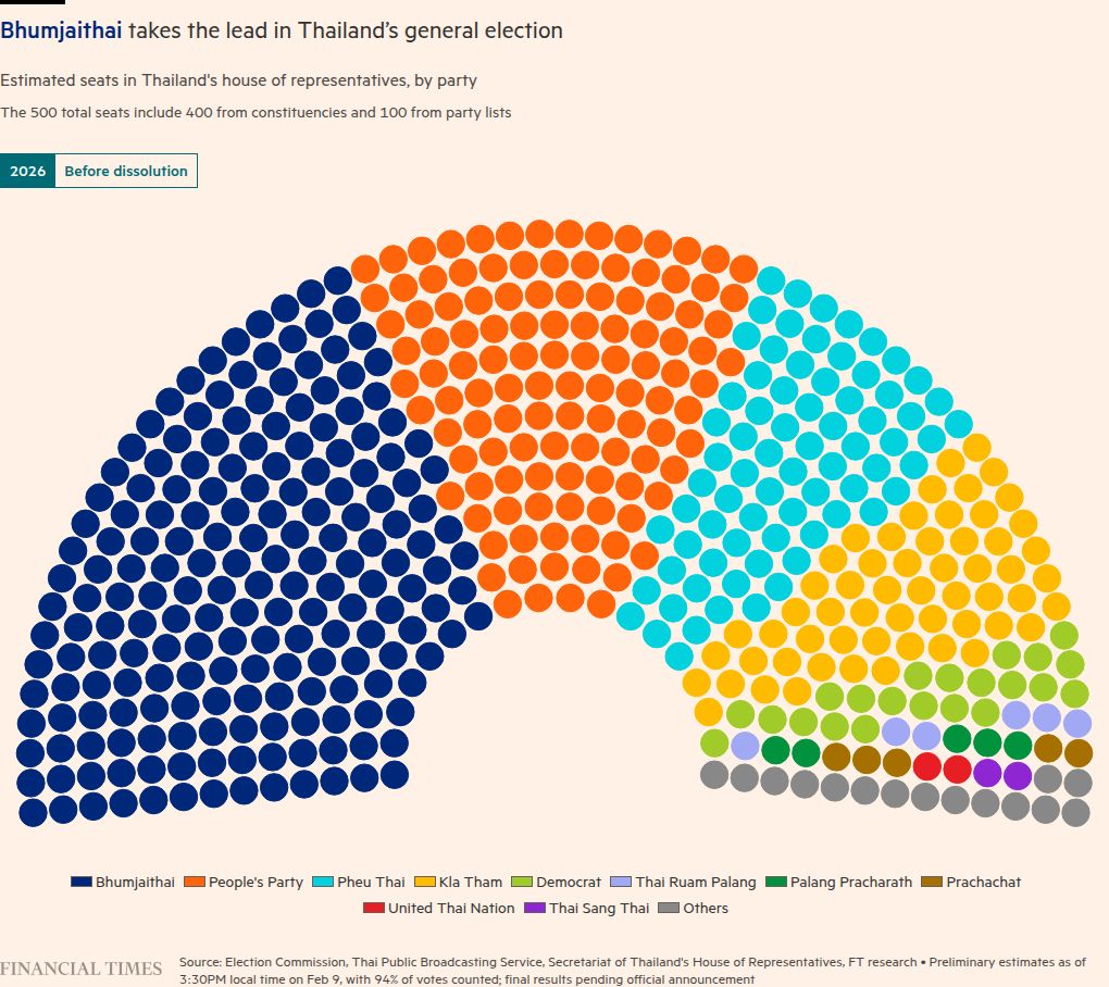 Prime Minister Anutin Charnvirakul’s Bhumjaithai Party, which has become the flag-bearer of the conservative royalist-military establishment, is on track to form the government after preliminary results from Sunday’s election showed it was leading in more than 190 of the 500 seats in the lower house of parliament.
