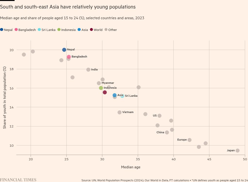His main opponent is the country’s former prime minister KP Sharma Oli, who was forced to resign after a huge youth uprising last year. While his government’s decision to ban some social media sites was the immediate trigger for the violence, it came after years of simmering resentment about corruption, nepotism and the lack of economic opportunities for young people in the country. The median age of the population in Nepal is 25, which is below the Asian average of 32.